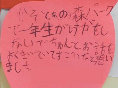 本校のきらきらの木(全校・教室)は、年間を通じて継続している活動です。行事の振り返りにも活用しています。心をつなぐ言葉が当たり前に聞こえてくる学校は、本校が目指す学校像が実現した姿の一つです。