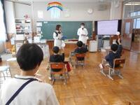 学校薬剤師様と養護教諭をゲストティーチャーに迎え、「くすりのつかい方をよく知ろう」をテーマにした2年生の授業が行われました。○×クイズでは「飲み忘れた薬をまとめて飲んでよいか」「お医者さんからもらった薬を取っておいて後で使ってよいか」などが出題され、答えについての解説を薬剤師様からいただきました。カプセル薬を少しの水で飲んだときと適量の水で飲んだときの違いについて、空のカプセルを使って確かめる実験も行いました。薬についての基本的な知識は、喫煙防止や薬物乱用防止にもつながります。自分の体を守るための、大切な学習になりました。