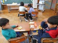 夏休み明け9月から12月までの子供たち、先生方の様子をスライドで振り返りました。自信満々で大活躍だったことがよく分かります。「サンタクロースっているんでしょうか?」の本をもとに、思いやりや素直な心など目に見えなくても確かにあること、目に見えないものほど大切であること、冬休みには誰かのためになることを考えて取り組んでほしいことについて話がありました。児童指導主任恒例のあいうえお作文もありました。今年最後の給食はカレーでした。