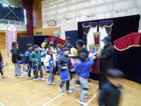 まざあぐうすの皆さんによる、スライド絵本の読み聞かせと人形劇の公演がありました。スライド絵本のタイトルは「すきなこと にがてなこと」です。一人一人の「すき」と「にがて」があるから、支え合う楽しさがあるのですね。人形劇のタイトルは「おひめさまとブタ」です。賢いブタの大活躍に、子供たちの心も釘付けでした。