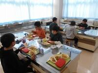 ランチルームが就学時健診の会場になるため、給食を教室(5・6年生は2階の家庭科室)で食べます。これはこれで新鮮です。