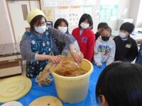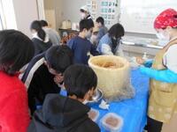自分たちで種をまいて収穫した大豆を使って、今年1月に仕込んだ味噌が完成しました。それはそれは立派な味噌になっていて、これまで苦労してきたことが報われた思いです。味見をしてみたら、売っている味噌よりおいしく感じました。みんなで分け合って持ち帰ります。味噌汁になるのかもろきゅうになるのか、楽しみですね。