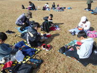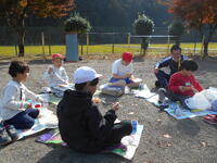芝生広場に移動して、外遊びとお弁当タイムです。男女学年分け隔てなく遊んでいる姿が微笑ましいです。お弁当を食べ終わったら食休みをして帰ります。