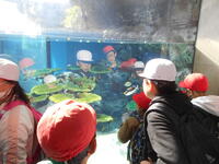 おもしろ魚館の見学です。6年生の班長さんが頑張ってくれています。頼もしいです。