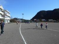 1・2年生は3分間走、3~6年生は5分間走です。自分のペースで走ります。先生も走ります。