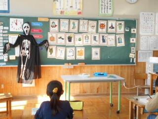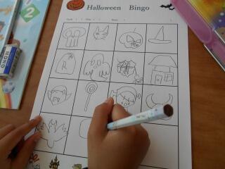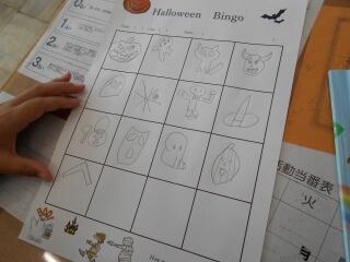 英語活動では、ハロウィンについて学習しました。ハロウィンに関する言葉を学んだり、ビンゴをしたりしました。
