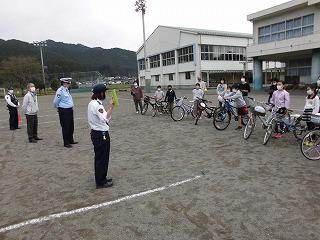 5校時に4年生が鹿沼警察署交通安全課の協力を得て、親子自転車教室を開きました。校庭に模擬道路をかき、実際に安全な乗り方について実技指導をいただきました。あらためて自転車の安全な乗り方について確認することができ、よい勉強になりました。