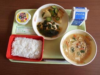 加園小の6年生がALTの先生と一緒に英語の勉強をしながら考えてくれた献立です。テーマは『地元の食材を使い、栄養バランスを考えた献立』です。鶏のにらソースに使われているにらとコロコロ漬けの大根は鹿沼市で育てられています。かんぴょうの玉子汁のかんぴょうと玉子は栃木県産で味噌は加園小4年生が3年生のときに作った味噌です。地元食材がたくさん使われているので「さつきランチ」にもなっています。とてもしくいただきました。