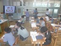 テーマは「親切・思いやり」です。算数の問題につまずいている友達に答えを教えるのは親切なのか。鞄が重いから持ってほしいと頼まれて持つことは親切なのか。そんな時やさしい人なら何と答えるか。具体的な受け答えの場面を通して、「やさしさ」や「親切」について考えます。自分の考えをワークシートに書いたりグループで話ったりしているときは「答えを教えてしまってはあとで困る」「自分で持てるものは持つべきだ」との意見でも、いざ役割演技となると、相手を傷つけたくないという意識が働いて、まさに「やさしい」表現を工夫するようになります。子供たちの「やさしさ」が形として現れた場面でした。授業後には学力向上コーディネーターの先生と市教委指導主事の先生、本校の先生方とともに、授業の振り返りを行いました。