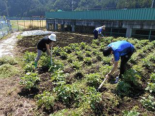 児童の皆さんが下校した後、先生たちが、階段やベランダの掃除、プランターや花壇、校庭の整備を行いました。授業だけでなく、環境面においても学校再開に向けての準備を進めています。