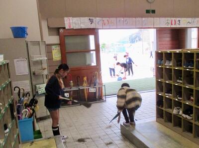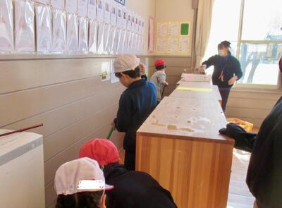 開始時の放送で、「今日は大掃除です。しっかりきれいにしましょう」と呼びかけられると「はいっ!」と答える声が聞こえてきました。みんな熱心に取り組みました。