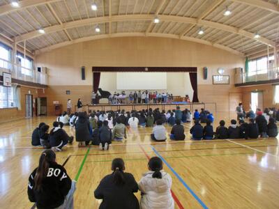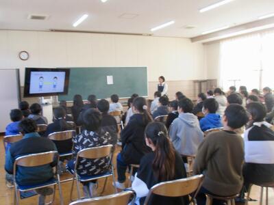 明日から13日間の冬休みが始まります。学校長の話でも伝えましたが、病気やけがをしたり事件や事故に巻き込まれたりせず「元気に」、そして、家族や友達をはじめ、いろいろな人と仲良く過ごす「楽しい」冬休みにしてほしいと願っています。