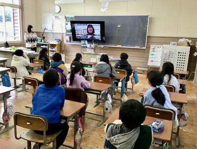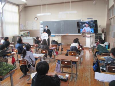 今日は、冬休みが始まる前の日ということで、「冬季休業前集会」を実施しました。集会という名称ですが、寒さ対策も兼ねて、校長室と各教室をオンラインでつないで行いました。