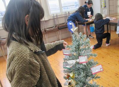 おすすめの本を紹介するカードをツリーに飾ったり・・・