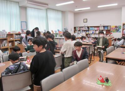 図書室で、冬休みに読む本を選んだり、冬休み前なので、みんなで分担して校内をきれいにしたりしている学級もありました。