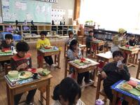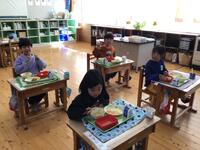 初日は、お隣り韓国の料理「ヤンニョムチキン、のりナムル、カムジャクク(ジャガイモのスープ)」です。児童にも食べやすいように多少の味付け等がされていますので、とても美味しくいただくことができました。