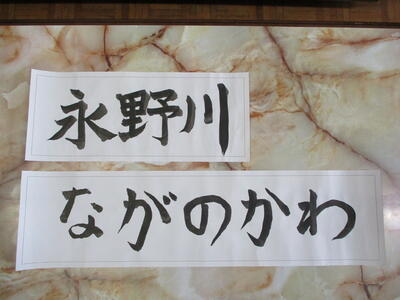 実は、夏休み前に県の土木事務所から、橋と川の名前のレリーフを地元の小学生の手書きにより作成したいとの依頼を受けました。そして、4名の5、6年生が夏休みに書き上げた作品を土木事務所に提出したところです。