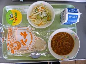 ☆さつきランチ(特産物献立);さつきの舞 米粉パン・牛乳・インド煮・かんぴょうサラダ