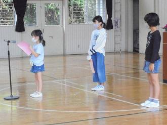 今日の1時間目には2学期の始業式を行いました。体育館はとても暑かったのですが、子どもたちはいつものように立派な態度で式に臨みました、代表児童2名も2学期の目標について堂々と発表することができました。校長からは「色々な場面で指示を待つのではなく、相応しい行動について自分で判断し、実行していきましょう。」という話をしました。