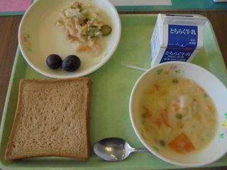☆黒食パン、コーンクリームシチュー、ツナサラダ、巨峰2こ、牛乳☆