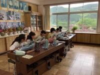 その後、子供達は一人一人、お箸とティッシュケースを作りました。