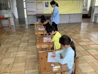校歌を歌いながら体操をするので、1年生は校歌も覚えることができます。
