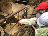 子牛にミルクをあげる場面では、子牛の力がとても強く、引っ張られてしまいそうです。