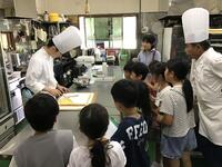 子供達は、四角いスポンジケーキがロールケーキに変わっていく様子をじっくり観察していました。