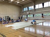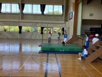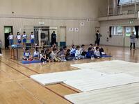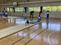 今日の業間は、3年生から6年生の体育で学習してきたマット運動の発表会を行いました。