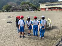 1、2年生の体育ではダンボール箱を的にしてボールを投げています。