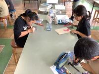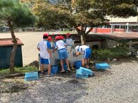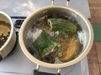5年生はヘチマを煮出して、皮やたねをとっています。