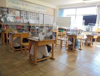 皆さんも昨年の豪雨の時や地震の時などに聞いたことと思いますが、携帯電話から発される緊急時のブザー音を1時間目の授業終了時に放送で流し、その音を聞いて机の下(安全な場所)に避難する訓練を行いました。緊急時の速報を聞いてすぐに避難の行動することが命を守るために必要です。ほとんどの児童がそのような行動をとることができました。