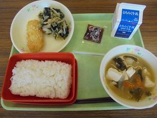 ☆セルフいか天丼(ごはん、いかの天ぷら)、ジャガイモのみそ汁、のり和え、牛乳☆