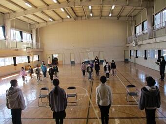 体育館で、卒業生と在校生が介しての練習を行いました。今まで別々に練習してきた成果を発揮すべく、それぞれが真剣な態度で臨んでいました。