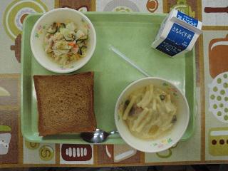☆黒食パン、マカロニのクリーム煮、ツナサラダ、牛乳☆