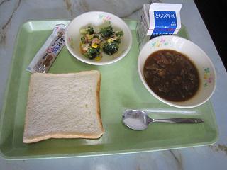 ☆しょくパン、キャラメルクリーム、ブラウンシチュー、ブロッコリーサラダ、牛乳☆