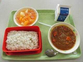 ☆麦ごはん、夏野菜のカレー、フルーツカクテル、牛乳☆