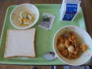 ☆しょくパン、みかんジャム、さつまいものシチュー、ミートオムレツ、ツナサラダ、牛乳☆