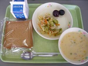 ☆黒食パン・牛乳・コーンクリームシチュー・ツナサラダ・巨峰