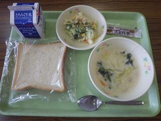 ☆黒食パン、牛乳、ポークビーンズ、ミモザサラダ☆