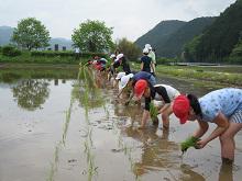 現地で、いつもお世話になっている方に指導いただき、田植えを行いました。慣れない田んぼで足を取られながらの作業でしたが、だんだん上手になっていくのが手を取るように分かりました。上級生が下級生の面倒をよく見て作業する姿や全員が熱心に泣き言一つはかずに取り組む姿を」見て感心しました。児童が田んぼで転倒することを心配していましたが、それは杞憂に終わりほっとしました。とは言え、田んぼの泥の中に入っての作業でしたので、多かれ少なかれ衣服が汚れたことと思いますが、一生懸命作業をやった印ですので大目に見てあげてください。