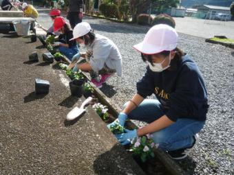 校舎前にビオラを、校庭の花壇にはチューリップの球根を植えました。環境が整うと心も整います。また、あの美しい花壇を見られるかと思うと、今から楽しみです。