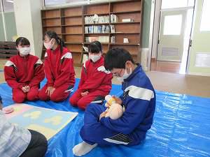 今年度は、人形での体験となりましたが、赤ちゃんのだっこの仕方や特徴について