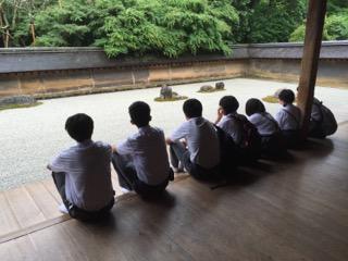 龍安寺の石庭を観るのか楽しみと話す生徒たちです。