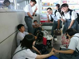 北千住駅に着きました。5時13分発のスペーシアで帰ります。みんな疲れてます!