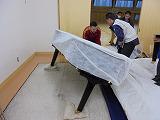 ピアノは,鍵盤の部分と脚の部分が分けられて梱包されていました。 ピアノを立てた状態で,
