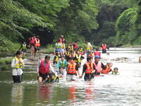 はじめは、川の生き物を観察し、挑戦したい人は、上流まで川を上っていきました。冷たい水が気持ちよかいです!