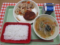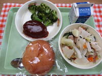 29日【水】丸パン、牛乳、ハンバーグデミグラスソースかけ、ボイルブロッコリー、ポトフ