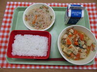 6日【木】ご飯、牛乳、ポークシュウマイ、ジャージャン豆腐、冷凍みかん