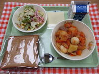 31日【金】黒食パン、牛乳、インド煮、イタリアンサラダ、スライスチーズ